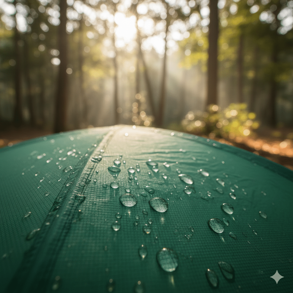 Die Imprägnierung macht das Außenzelt stark wasserabweisend. Regen perlt ab, statt ins Gewebe einzudringen. Die eigentliche Wasserdichtigkeit kommt aber von der PU- oder Silikonbeschichtung auf der Innenseite des Außenzelts. Die Imprägnierung schützt diese Beschichtung und verhindert, dass sich der Stoff vollsaugt – was wiederum Durchnässen und Kondenswasser reduziert.